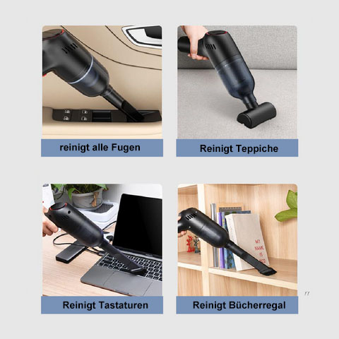 PORTABEL und KABELLOS: Sie können diesen tragbaren Staubsauger frei herumlaufen lassen, um die Fugen im Autoinnenraum, die Fugen zwischen dem Sofa im Gästezimmer, die Zimmerecke und die Küche zu reinigen. Der tragbare Staubsauger kann Ihnen an jeden Ort folgen und bietet mehr Komfort für Ihre Reinigungsarbeit.